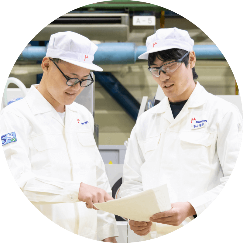 自分一人で判断できないときや迷ったときは、先輩に相談しアドバイスを求めます。社員同士の会話が多い職場環境はミクロン精密の魅力。
